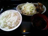 (とんてきが切ってくれてあるもの・たっぷりキャベツ・ご飯・みそ汁)